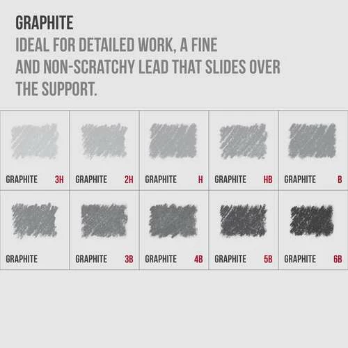 The Conté à Paris Drawing Set contains 12 graphite pencils in 10 different hardnesses. These pencils are ideal for hobby artists as well as professionals for sketches, drawings, detail and precision work. The graphite leads slide very smoothly over the paper.