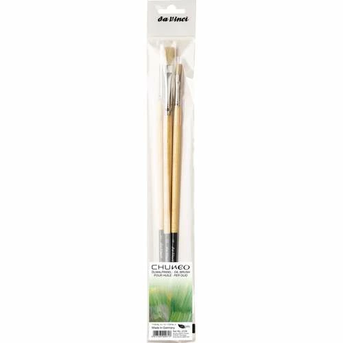 This da Vinci CHUNEO Oil Brush set consists of one round and two flat vegan brushes which offer a high-quality synthetic alternative to the traditional Chungking bristle for impasto painting. They are ideal for oil and acrylic painting