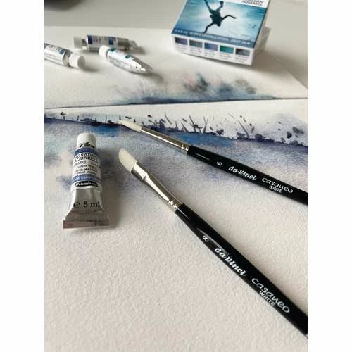 - 2 CASANEO WHITE watercolour brushes: size 6 round and size 8 flat