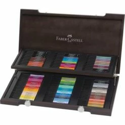 This Faber-Castell Pitt Artist Wooden Box Pen Set contains 90 pens presented in a stylish cantilever wooden box filled with an assortment of pens. These pens are ideal for drawing, sketching or mixed media.