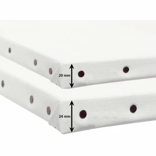The stretchers on Gerstaecker Excellence Linen Stretched Canvases are natural wood from managed forests in France. The frame is assembled following the traditional methods for large sizes (2 Tenon joints on the sides and notches top and bottom). Hardwood wedges (beech) and support bars (for the larger formats) are included with the canvases. All of these elements combined make for a frame which holds its shape well.