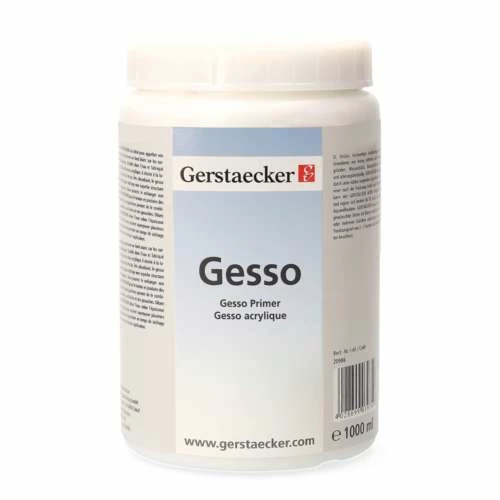 White, high-quality acrylic primer – GERSTAECKER Gesso. An ideal primer for preparing closed, grease-free and textile painting surfaces. Gesso is water-soluble, contains no solvents, is lightfast and resistant to ageing. Gerstaecker gesso gives a slightly rough surface after drying. It is excellent as a ground for oil colours, acrylic colours, watercolours and gouache.