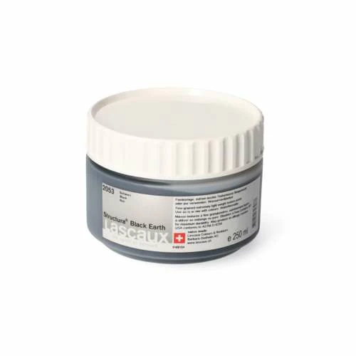 Lascaux Black Earth Structura Paste is a fine-grained, extremely light texture paste, which dries to a velvety, black, absorbent yet hard surface. It has excellent adhesion and once fully dry can be sanded and overpainted with acrylics.