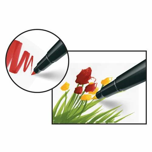 - 26202 = 24 pens in Straw yellow, Cadmium lemon, Lemon, Dark cadmium, Orange, Saturn red, Geranium red light, Carmine pink, Carmine dark, Cobalt light, Light blue, Mountain blue, Prussian blue, Night green, Meadow green, Moss green, May green, Sepia deep, Van Dyck brown, Gold ochre, Burnt ochre, Venetian red, Pompeian red, Black medium
