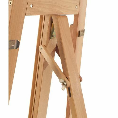 Mabef M13 basic easel, with ratchet-controlled canvas height adjustment, anti-vibration spring and sliding canvas support.