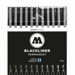 The Molotow Basic Blackliner Complete Pen Set contains 11 pens in every available tip size from ultra-fine to xtra fine + chisel and round tips. These pens are ideal for outlines, sketches, drawings etc.