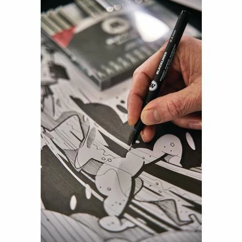 The ink in these pens is document-proof and water-based, and is water and chemical resistant. The pens have robust, metal-framed tips from 0.05 mm – 1.0 mm, chisel, round, calligraphy and brush S, and guarantee fine and exact lines ideal for outlining. Thanks to the “cap off” function, the markers are protected from drying out for 90-180 minutes even without a cap. The Blackliners are of high quality and have a non-slip, matt surface.