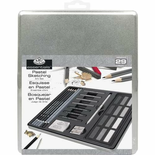 The Royal & Langnickel Essentials Pastel Sketching Art Set 2713 is a 24 piece set ideal for art students and artists alike. The items are clearly arranged and protected in a sturdy metal tin.