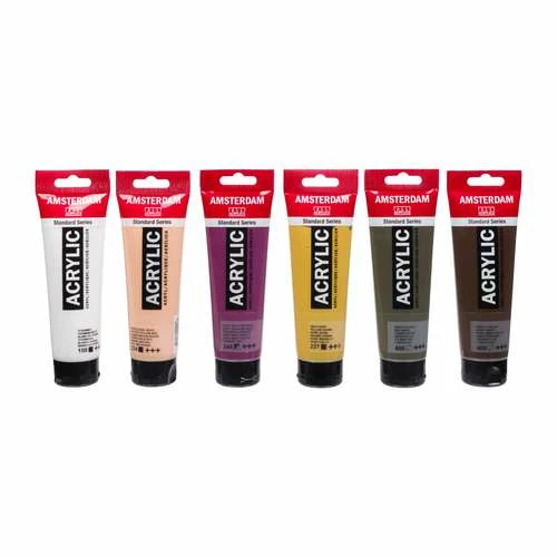 The AMSTERDAM Standard Series acrylic paint by Royal Talens has been much loved for years – and rightly so! This Royal Talens AMSTERDAM Portrait Set contains 6 x 120 ml tubes.