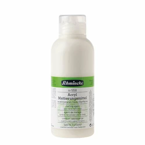 Schmincke acrylic matting agent produces a semi-matt to matt surface effect when added to acrylics. Slows drying time. Maximum mixing ratio: 1:1.