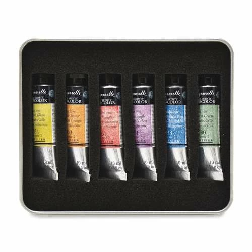 These Sennelier Extra Fine Watercolour Iridescent Tube Sets contain 10ml tubes. The following Sennelier Extra Fine Watercolour Iridescent Tube Sets are available: