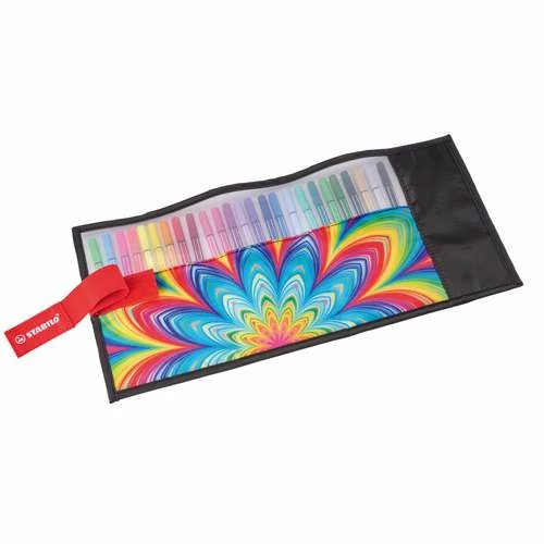 This Stabilo Pen 68 Arty Pen Roll is perfect for school, office and home. It contains 25 different colour pens in a practical, colourful, roll-up case.