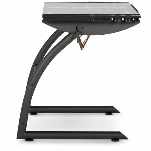 At the seated table height of approximately 78cm the table top can be used flat as a desk or tilted to 68° to work like a drawing table. The desk becomes a standing table when the pedestal is brought to a standing height of 100cm. In this position, the working surface has a slope of 22°. This Studio Designs Triflex Drawing Table has pockets and pencil holders, and is ideal for artists who like to sort their work tools and keep a clear and tidy table top. The matt black frame of the desk is made of durable, powder-coated steel.
