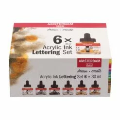 This Talens Amsterdam Acrylic Ink Lettering Set contains 6 x 30 ml acrylic inks from the Amsterdam series. All shades of this highly pigmented ink have the highest lightfastness and are highly pigmented.