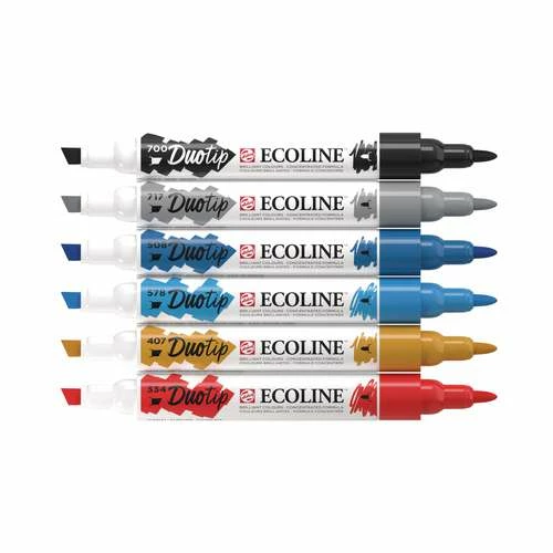 This Talens Ecoline Duotip Marker Urban Landscape Set contains 6 markers which offer brilliant watercolours and 2 different tips: a narrow bullet tip and a wider chisel tip. They are ideal for fine contours and details as well as broad lines and filling larger areas.