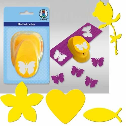These plastic Ursus Motif Punches have a metal punch and catcher are suitable for punching both inside and outside contours so that either the punched out motif or the paper with the die-cut silhouette can be used.
